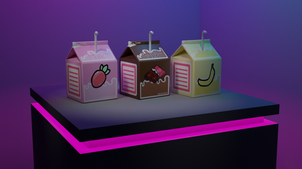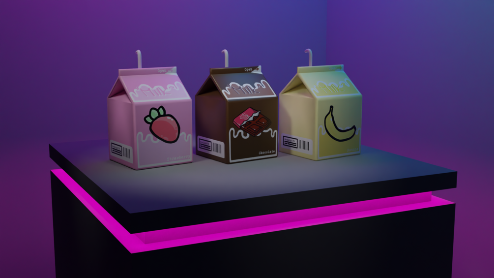 Strawberry, Banana, and CHOCLATE(NEW) Milk